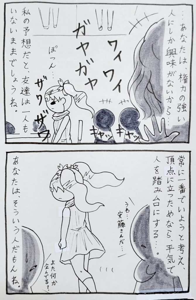 ユリちゃんの予想通り、サクラちゃんには「心を許せる友人」がいません、彼女の中で自分以外の人間は「利用する駒」と考えており、「相手も私を利用するかもしれない……。」と疑ってしまうため、仲を深めることが出来ないのです。