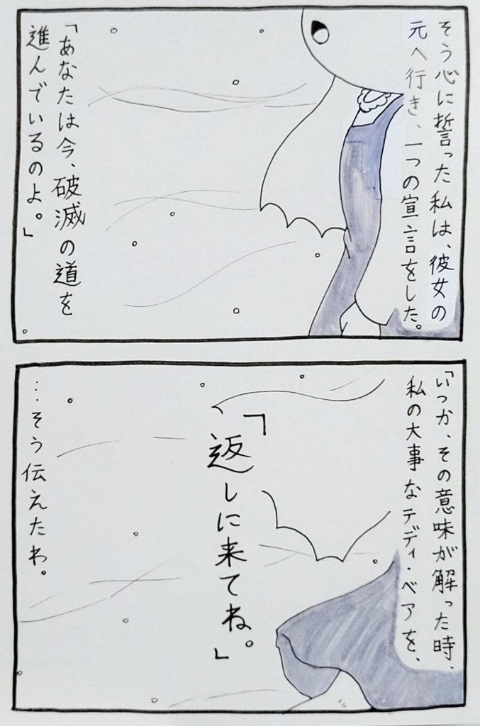 「あなたは今、破滅の道を進んでいるのよ、自分の過ちに気付いたその時に、大事なテディベアを返してね。」と約束をしたユリちゃん、まだ人生経験の浅いサクラちゃんには響きませんでしたが……。