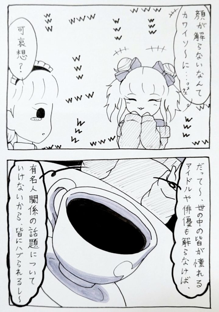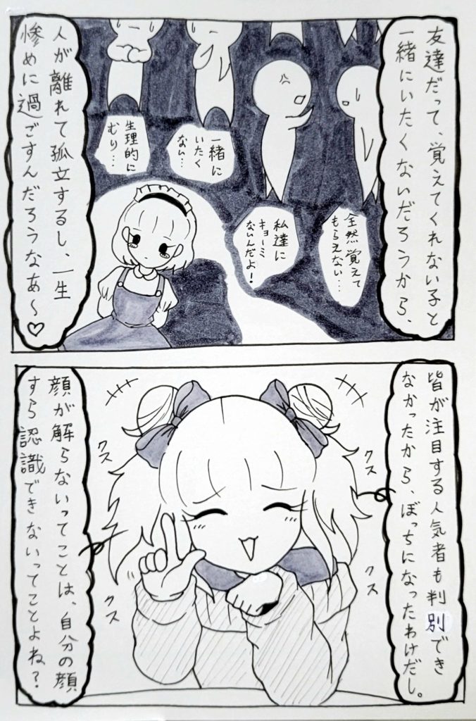 自分のことを認識してくれない(というより出来ない)いつばちゃんに対して、「あんたは悲惨wwwそんなんだから孤立するんだよwww」「あ~良かった~wwwハートは顔が解るマトモな人間で♡www」と……酷い言葉を、これでもかというくらい投げ付けます。